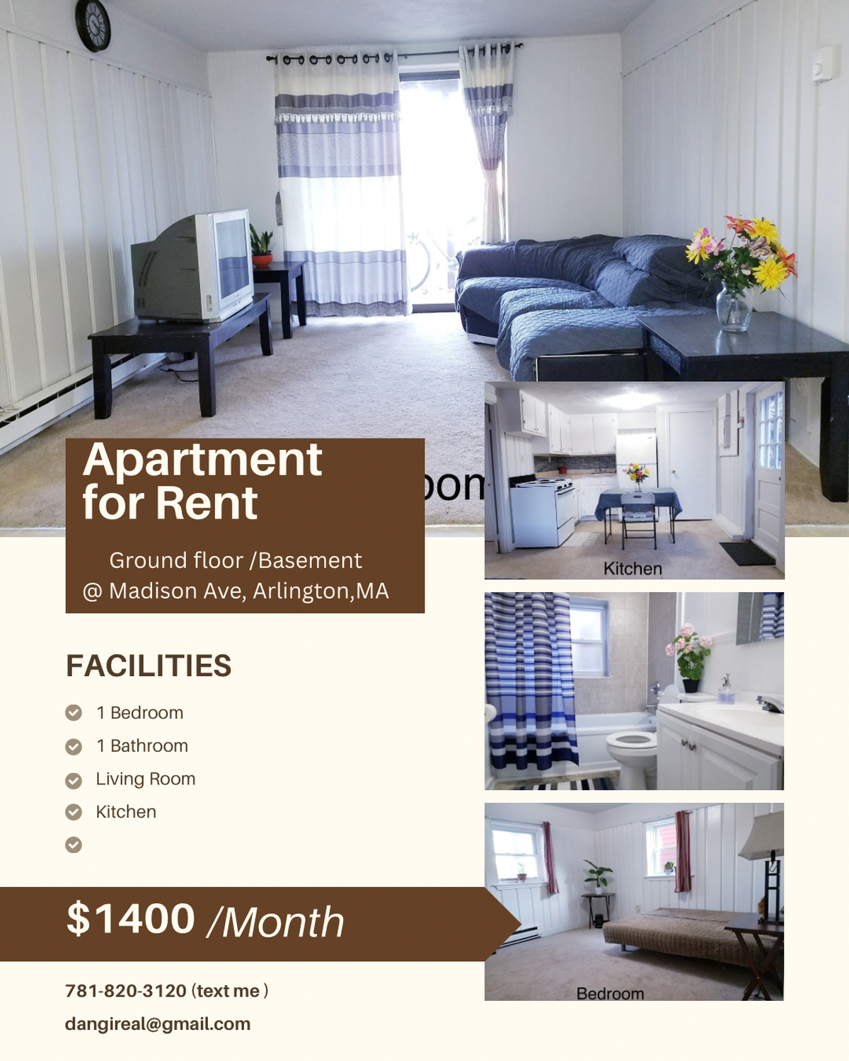 Affordable 1 bedroom unit for at Madison Ave ,Arlington ( basically basement .