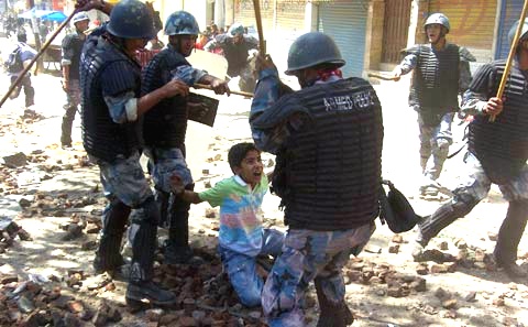 I can understand the pressure on Nepal Police epically on riot but one little kid and four police beating with that cruelty. That has no excuse. And Jai Nepal…looks like your brain is inside your ass. That boy is probably about 7-8 years old and don’t think that he knows anything about politics…You were not there to see if he was stoning to those police…Maybe he was just running for his life, who knows….If that picture is not heartbreaking than what is?
