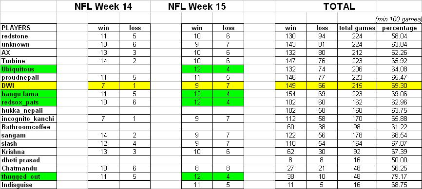 week 15 results....