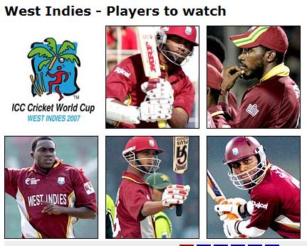 WI is my second favorite team. But to be honest, I think they have very slim chance of winning the cup. i would love to see them lift the cup. But they are very inconsistent. They arent the force that they used to be before. Cricket is on decline in the carribeans, thanks to american influence... more and more youngsters are into basketball and baseball. If they have to win the cup, Lara has to come up with some special performances and others should ably support him. Their batting is very unpredictable and even bowling is not that good. If we go by the kind of pitches that we saw in the warm-up matches, countries like SA will be in trouble. Maybe asian teams will do good in those soft-low-spinning pitches.