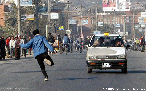 Shriya, you have got a nice point there. For example, look at the following picture where a taxi driver, who earns about $2 a day if he is lucky, is not allowed to do his job by the thugs belonging to the political parties of Nepal.