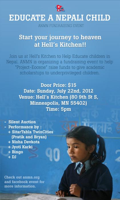 Start your week on a good note. Join us at Hell's Kitchen to Help Educate children in Nepal.