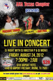 and" Amit Paul on Friday, August 24, 2012 at DFW Airport Hotel.The concert will be