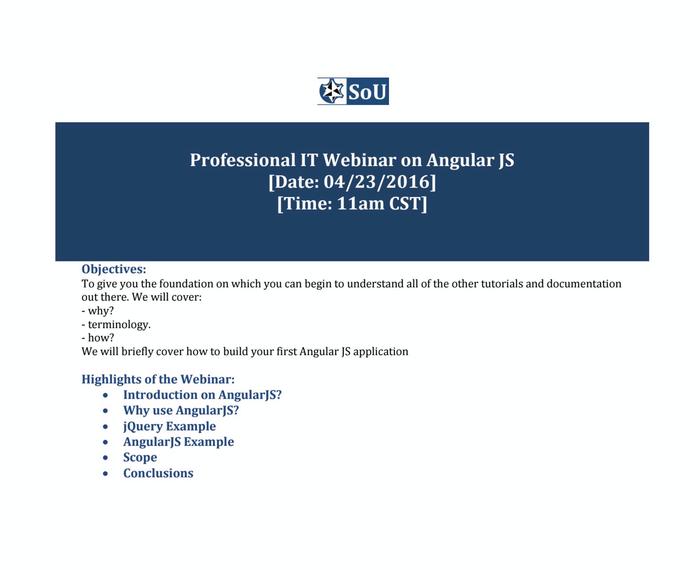 Professional IT Webinar on Angular JS