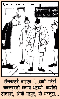 ke garne freek , desh ko sthiti ta lajjaspad nai bhaisakyo. Drama is still going on. We are all sad to see our country in present situation. But things like this cartoon help us lift our spirit a little bit. Quite funny indeed !